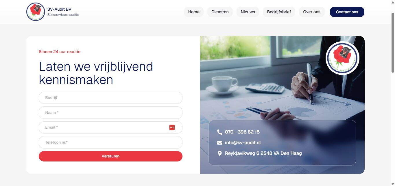 Het resultaat is een moderne, betrouwbare en goed vindbare website die de expertise en professionaliteit van SV-Audit BV perfect weerspiegelt.